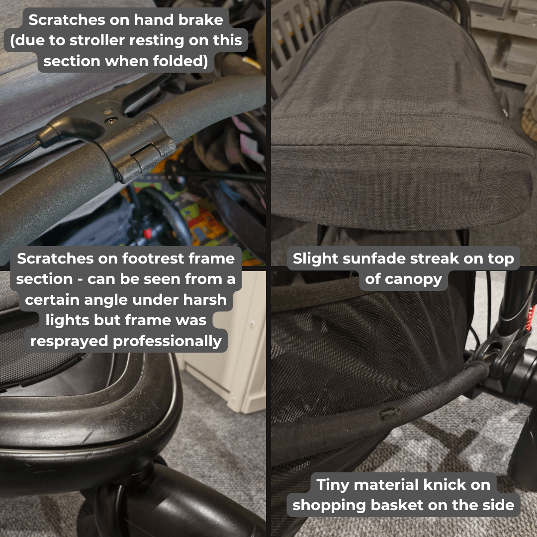 UPF 50+ canopy with mesh panels offers sun protection and ventilation