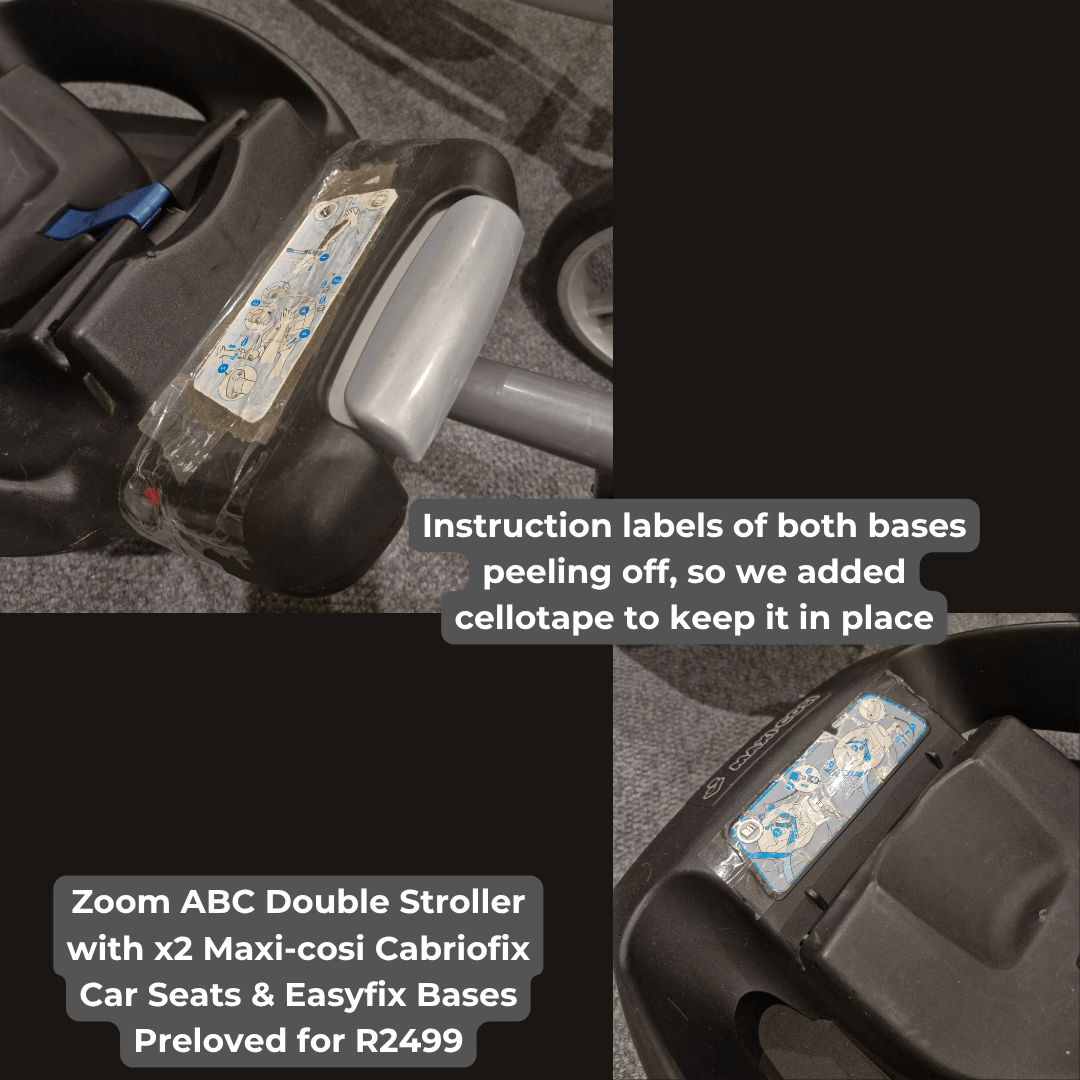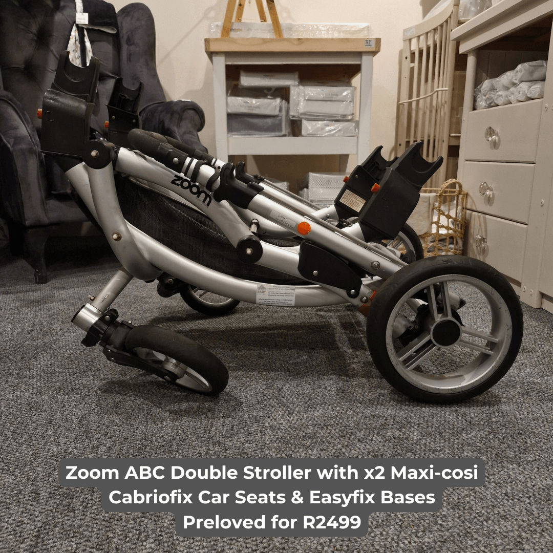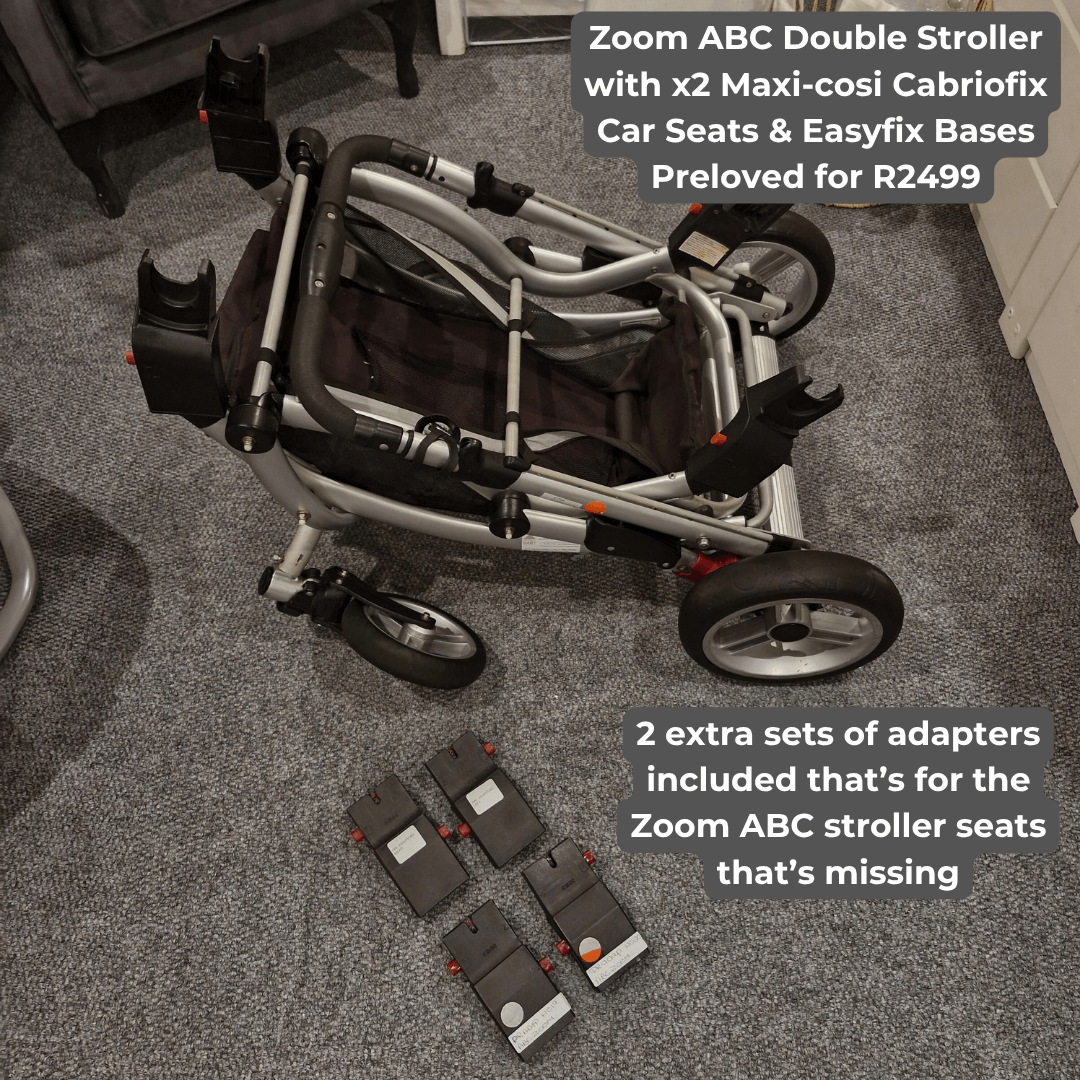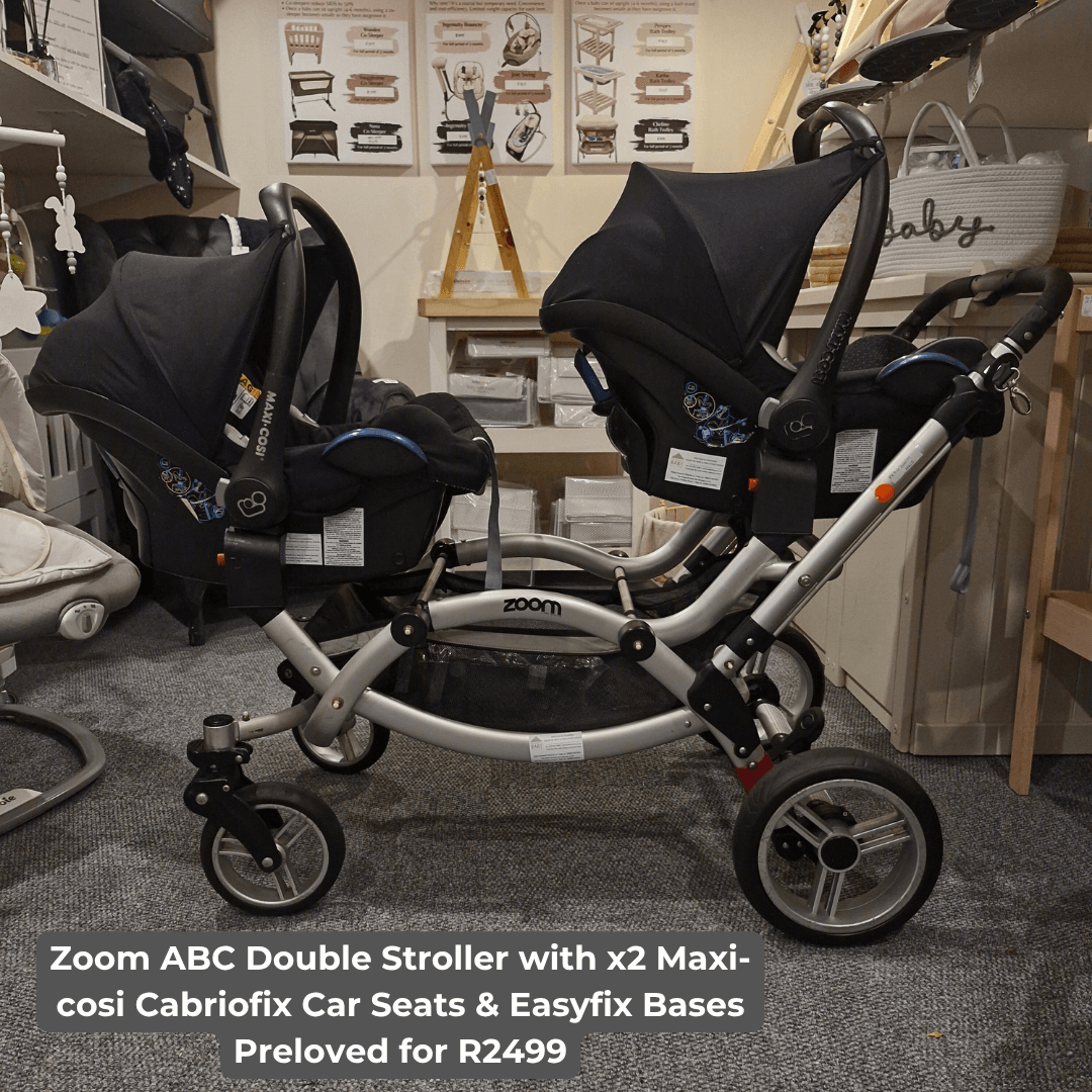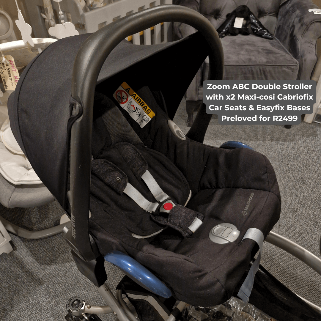 Zoom ABC Double Stroller with x2 Maxi-cosi Cabriofix Car Seats & Easyfix Bases